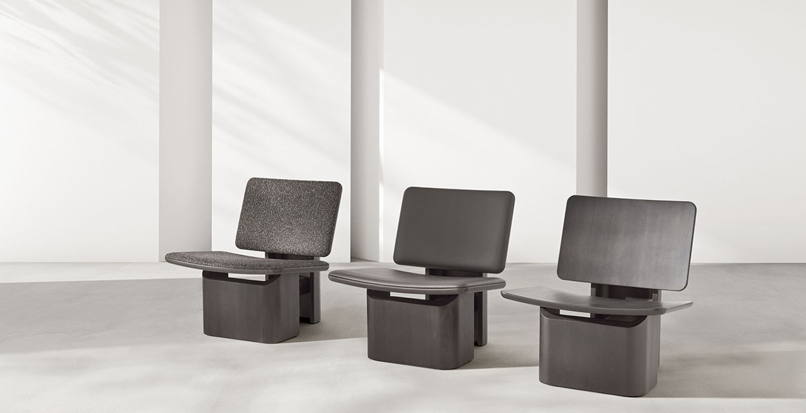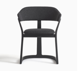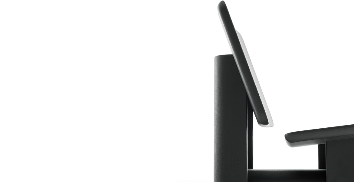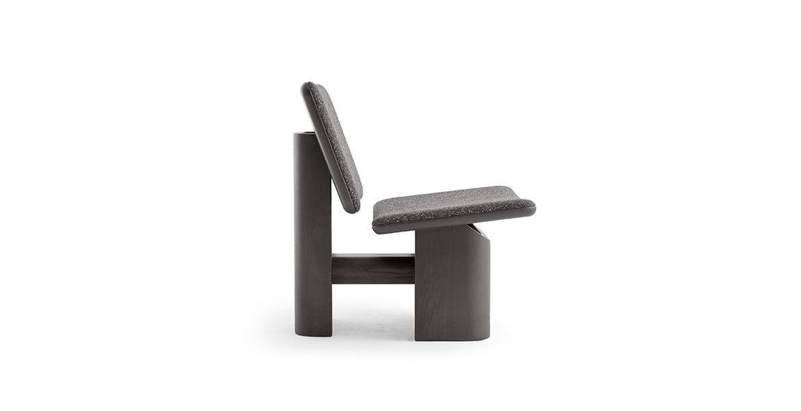 De sobere maar sculpturale vlakken van zitting en rugleuning, die rusten op gebogen wanden, worden verbonden door een eenvoudige verbindingsbalk. Deze balk creëert de kenmerkende structurele dialoog van de Arquus-stoel en onderstreept het architectonische karakter ervan.