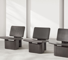 De drie poten staan stevig in de grond voor stabiliteit, terwijl een hoofdas vanuit de grond omhoog komt en zich als takken ontvouwt om de zitting en armleuningen te vormen, wat de structuur van een boom oproept. We hebben deze stoel “Radice” genoemd, wat wortel betekent in het Italiaans, verwijzend naar de drie verankerde poten.