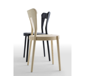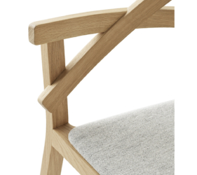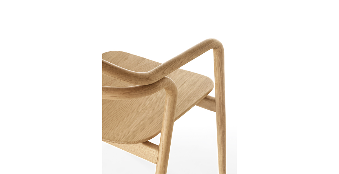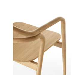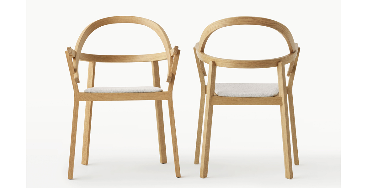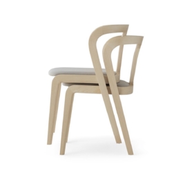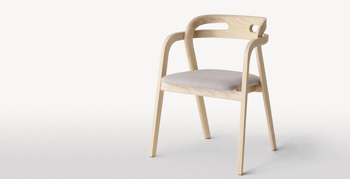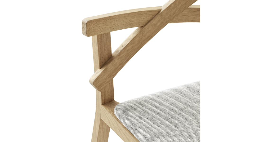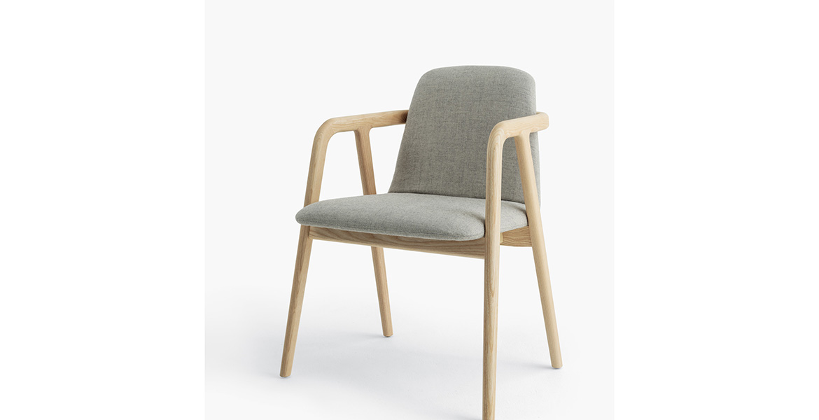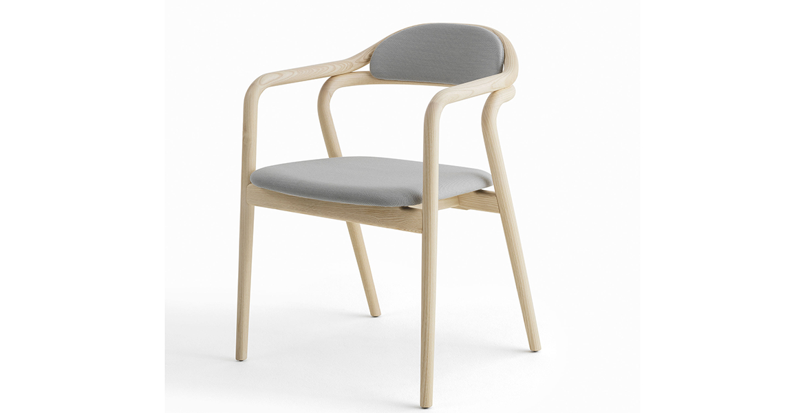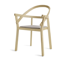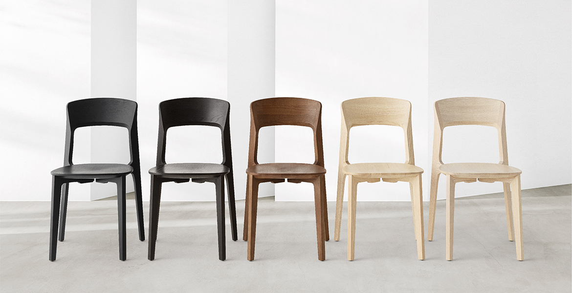 Het lichtgewicht frame van de stoel is gemaakt van massief essenhout (natuurlijk of gelakt) en de zitting is verkrijgbaar in 3 uitvoeringen – touw, Weens riet en textielbekleding – waardoor de stoel veelzijdig in diverse interieurs past.
