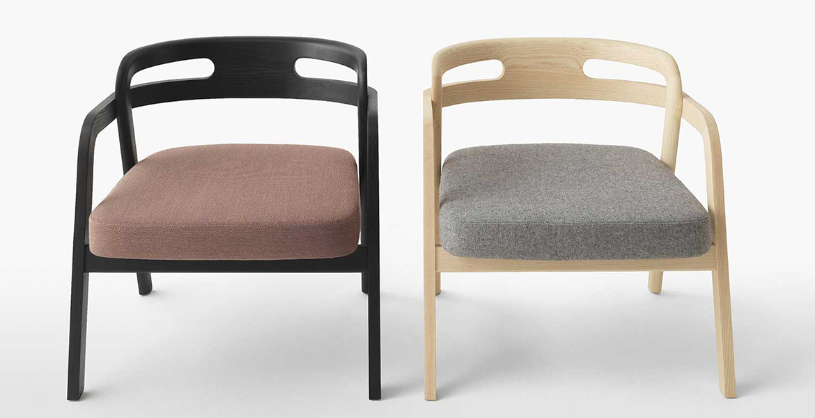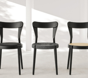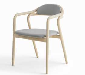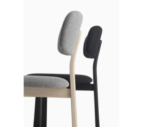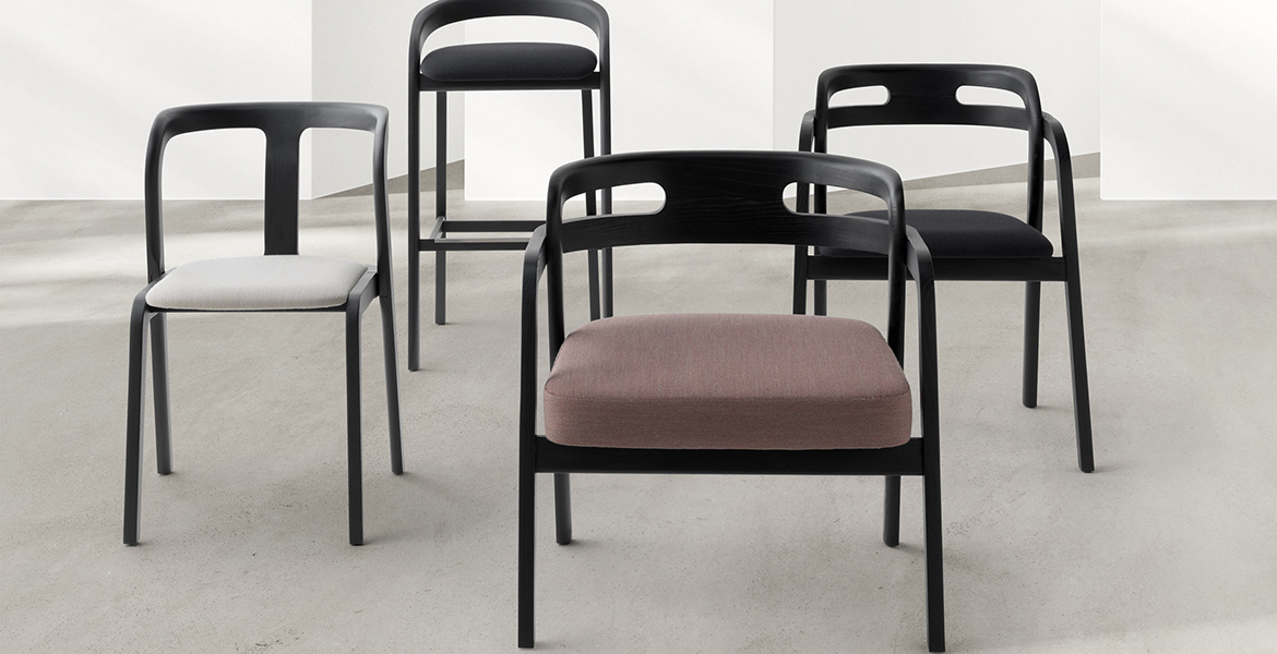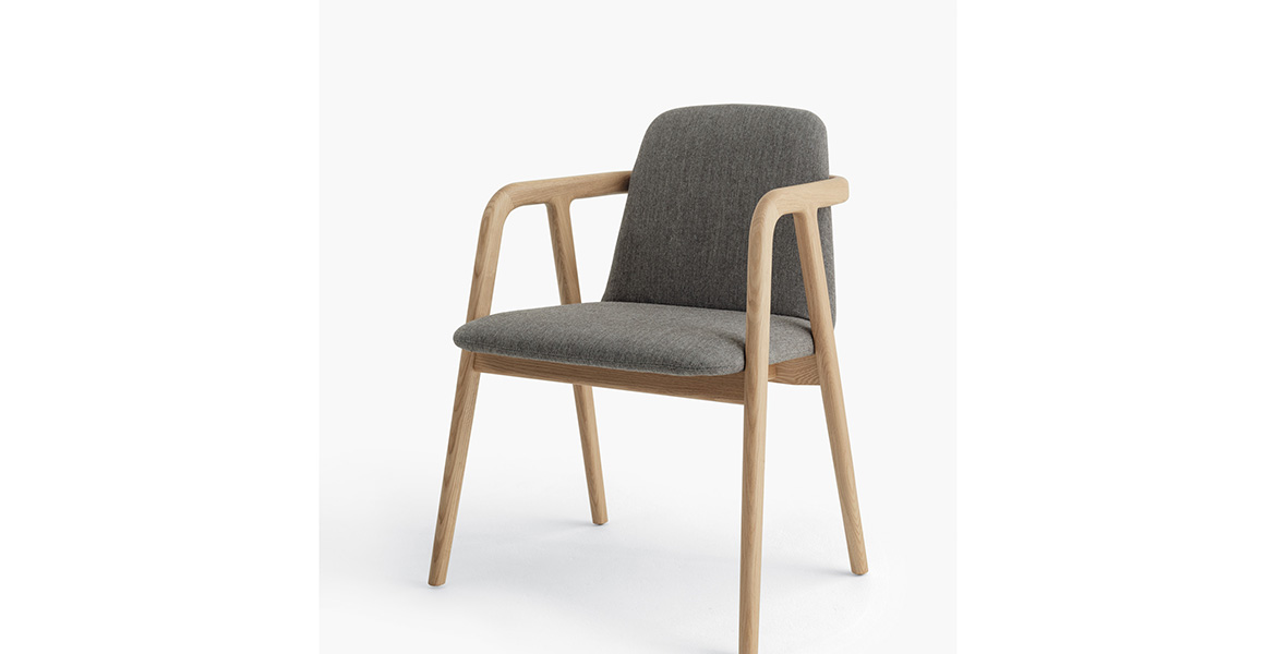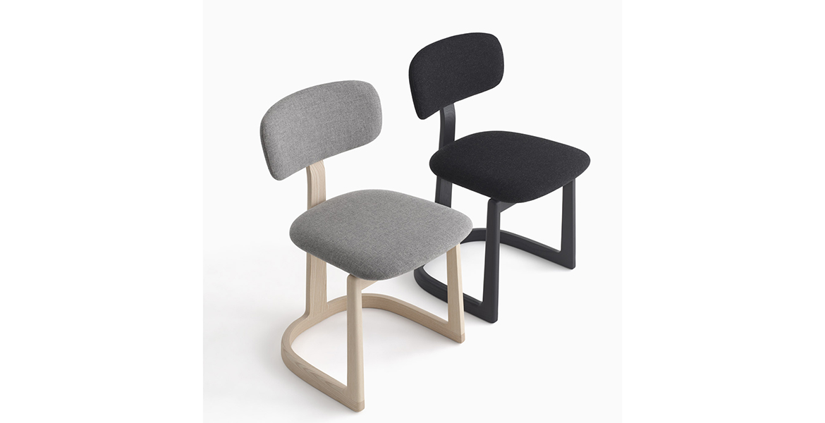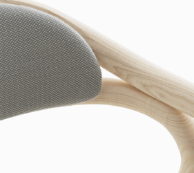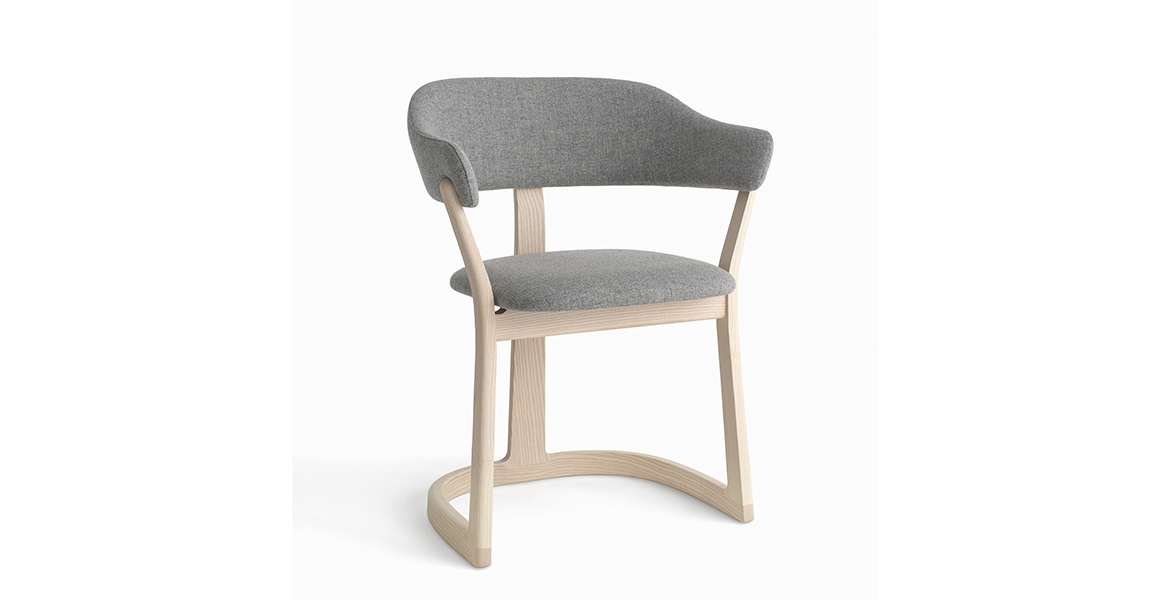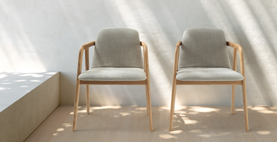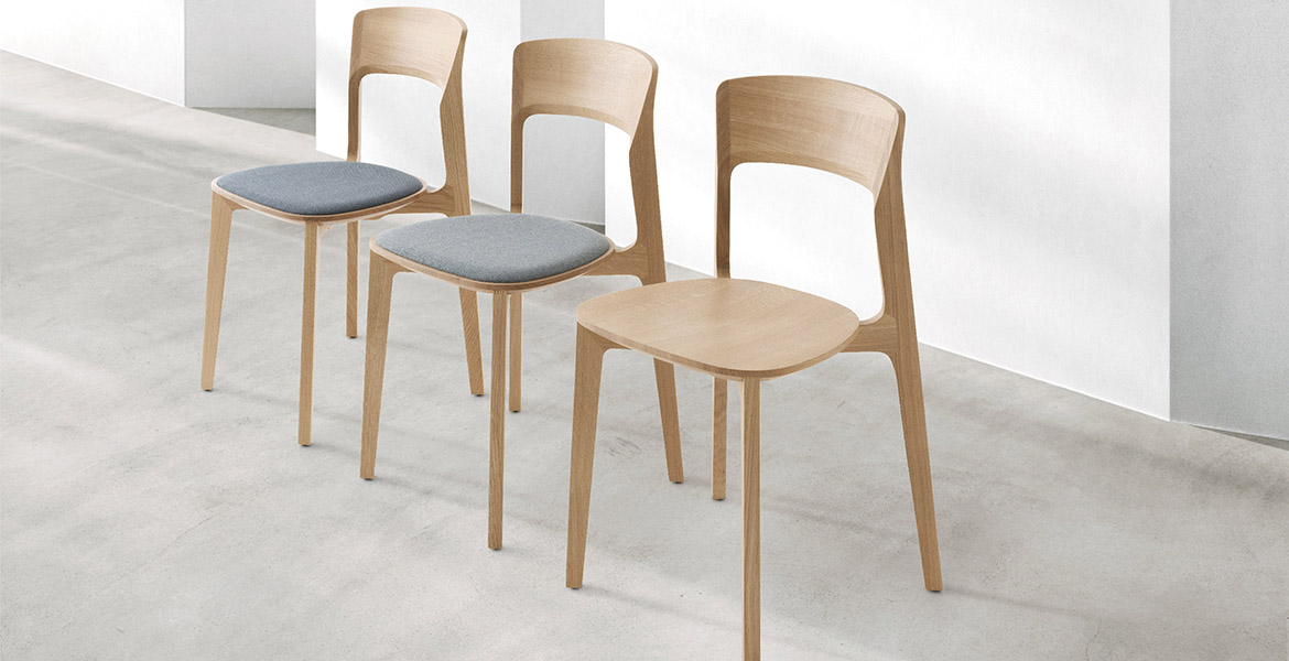 Het lichtgewicht frame van de stoel is gemaakt van massief essenhout (natuurlijk of gelakt) en de zitting is verkrijgbaar in 3 uitvoeringen – touw, Weens riet en textielbekleding – waardoor de stoel veelzijdig in diverse interieurs past.