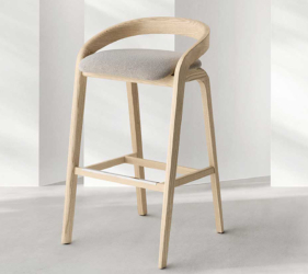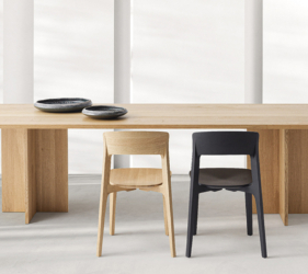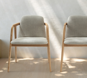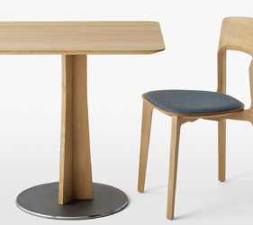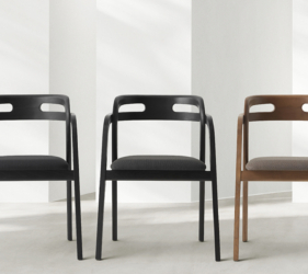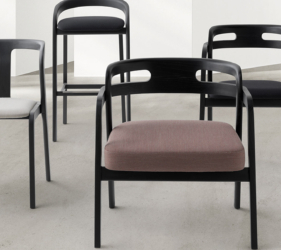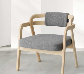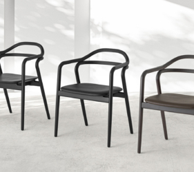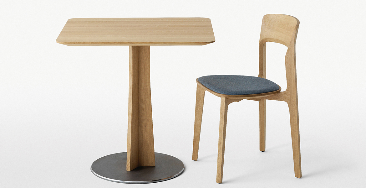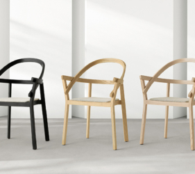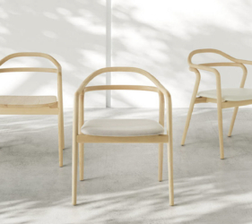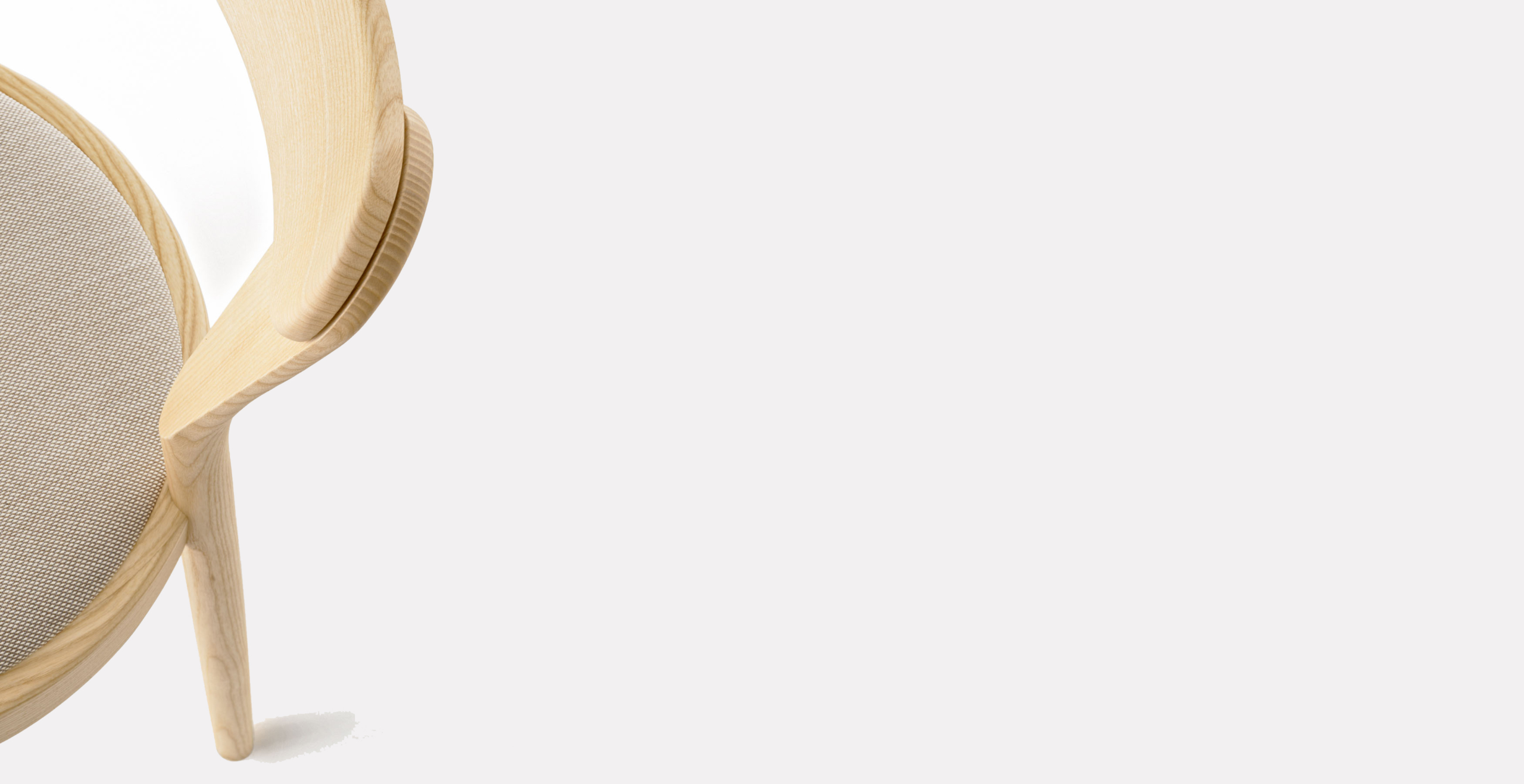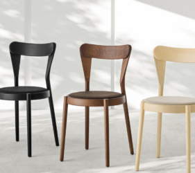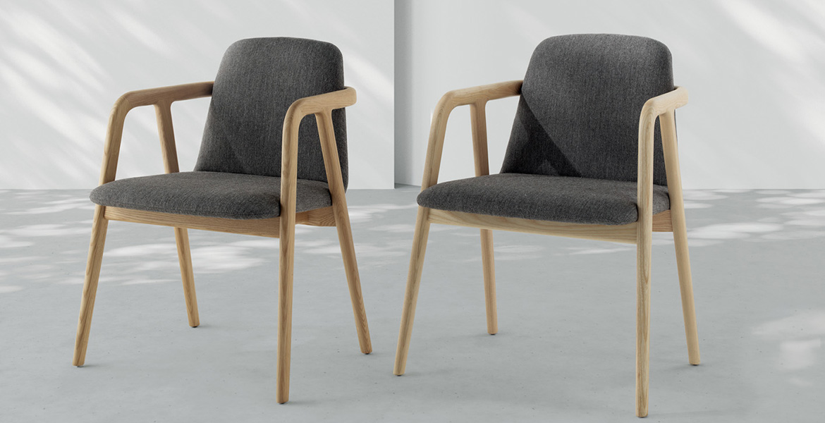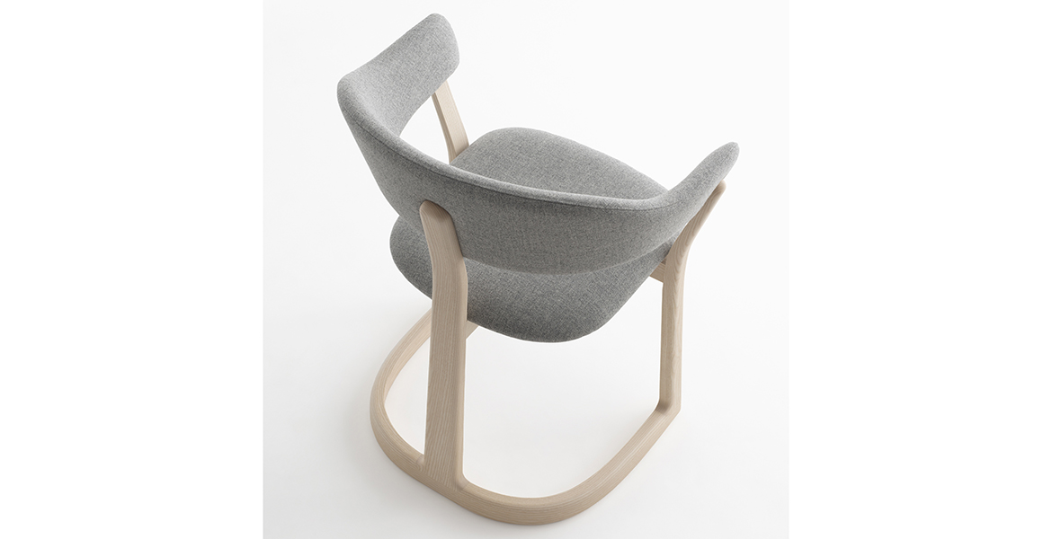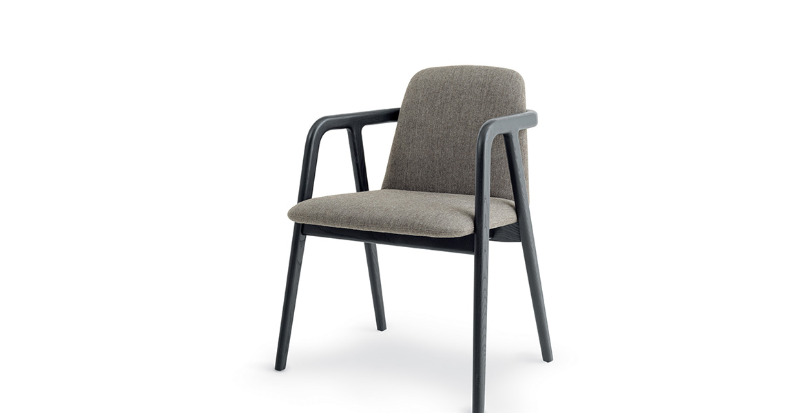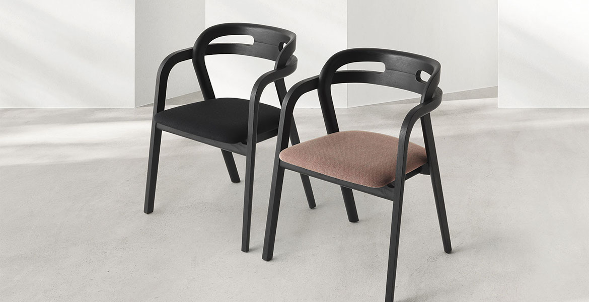 Het lichtgewicht frame van de stoel is gemaakt van massief essenhout (natuurlijk of gelakt) en de zitting is verkrijgbaar in 3 uitvoeringen – touw, Weens riet en textielbekleding – waardoor de stoel veelzijdig in diverse interieurs past.